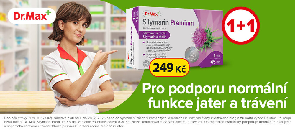 Při koupi 2 balení přípravku Dr. Max Silymarin Premium 45tbl. zaplatí člen klientského programu Karta výhod Dr. Max za druhé balení 0,01Kč. Nelze kombinovat s jinými akcemi a slevami.