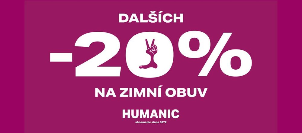 Zima je v plném proudu. Využijte proto naši super akci -20 % na veškerou zimní obuv! Platí i na zlevněné modely. Přijďte si vybrat zimní boty za super ceny!