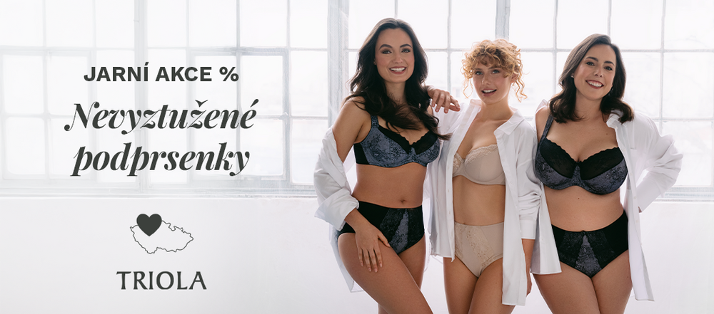 Lehkost, pohodlí a přirozený tvar. Nevyztužené podprsenky jsou ideální volbou pro každodenní nošení – jemně kopírují křivky, poskytují oporu a nechají vyniknout vaši přirozenost. Objevte oblíbené střihy nyní za zvýhodněné ceny. Slevu získáte s kódem JARO10. Vyzkoušejte je na firemní prodejně TRIOLA nebo objednejte online ZDE