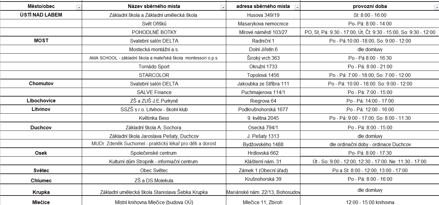 Níže také najdete seznam sběrných míst v celém Ústeckém kraji, kam můžete kabelku/batoh/kufr/dětskou knihu odnést.