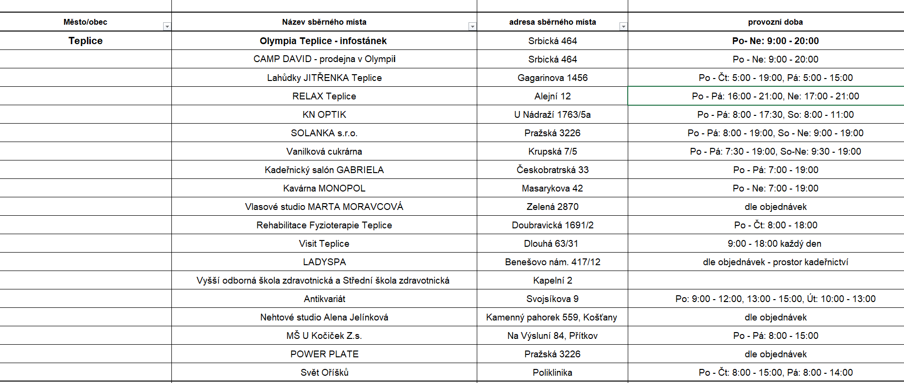 Níže najdete seznam dalších více jak 30 sběrných míst po celém Ústeckém kraji - na sběrná místa prosím již kabelky nenoste.