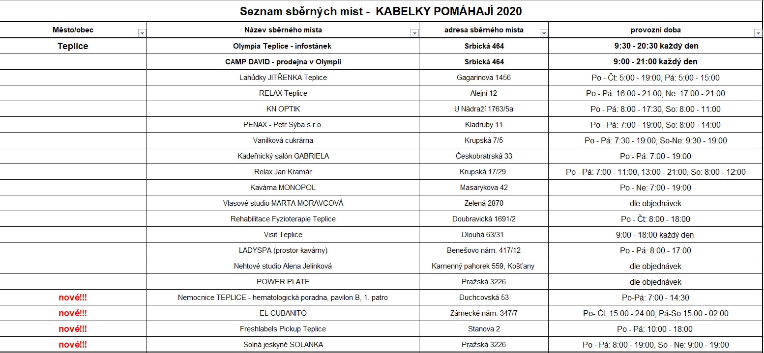 Kabelku nám můžete poslat také poštou na adresu: Správa centra Olympia, Srbická 464, 415 10 Teplice.