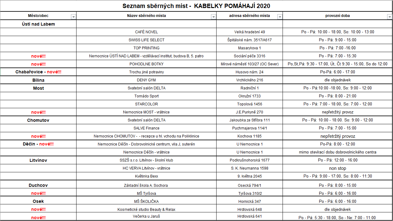 Nadační fond Krajské zdravotní, a.s. je letošním partnerem celého projektu. Nově tak najdete sběrná místa také ve všech nemocnicích, které Krajská zdravotní, a.s. sdružuje: