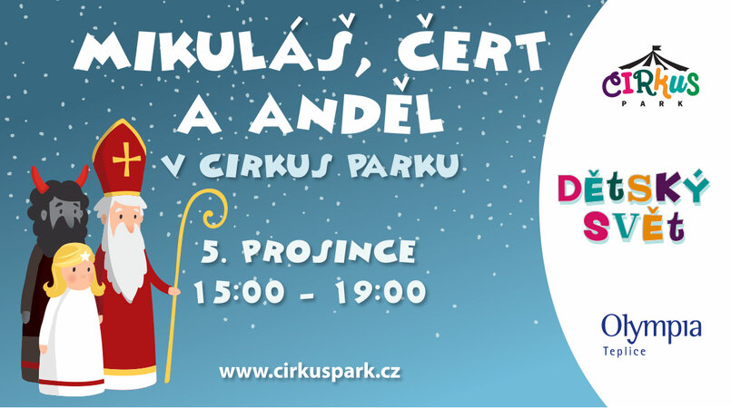 Mikuláš dorazí do CIRKUS PARKU ve čtvrtek 5. prosince a bude zde s čertem i andělem od 15 - 19 hodin.