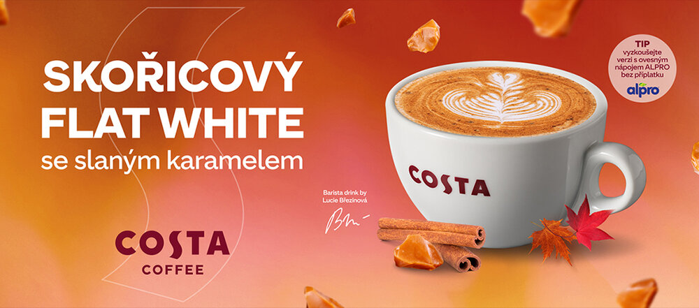 Vychutnejte si šálek našeho voňavého a hřejivého Skořicového flat white se slaným karamelem. Tato luxusní kombinace silné krémové kávy s našlehaným mlékem, skořicí a slaným karamelem je pro nadcházející chladnější dny jako stvořená.