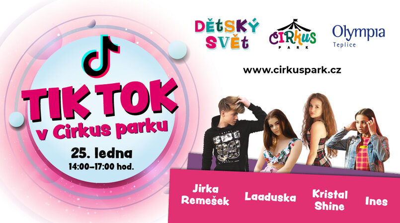 My jsme pro Vás ve spolupráci s Dětský svět - Cirkus park připravili jedinečné setkání mladých a úspěšných "Tik Tokerů" , které na svých profilech sledují až statisíce lidí a jejichž videa denně sbírají stejné množství zhlédnutí a lajků !