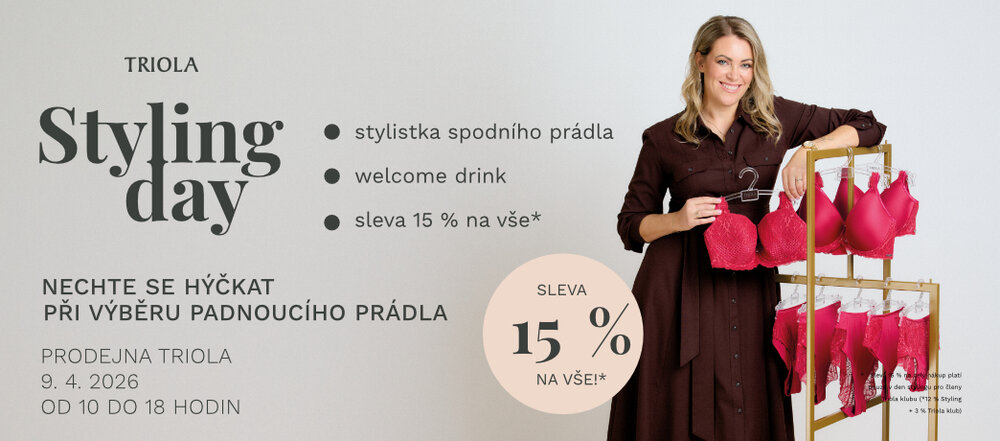 Přijďte si užít Triola Styling Day do prodejny Triola! Objevte dokonalou podprsenku, která vám perfektně sedne a zvýší sebevědomí! Profesionální stylistka vám pomůže najít správnou velikost a střih přesně pro vás. A navíc na vás čeká 15% sleva na VŠE! Více ZDE