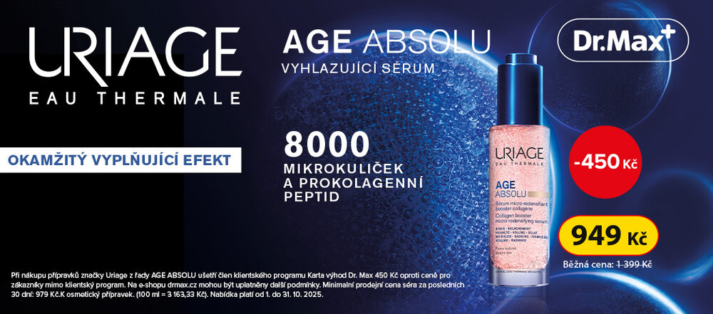 Při nákupu přípravku Uriage z řady Age Absolu ušetří člen klientského programu Karta výhod 450 Kč oproti ceně bez Karty výhod.