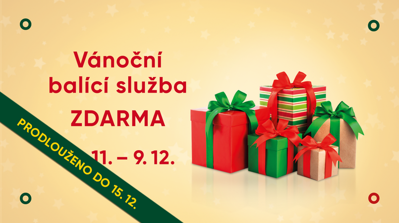 AKCE PRODLOUŽENA! VAŠE DÁRKY VÁM BALÍME ZDARMA AŽ DO 15.12.2021. Balící službu najdete u vstupu do jídelní části centra.