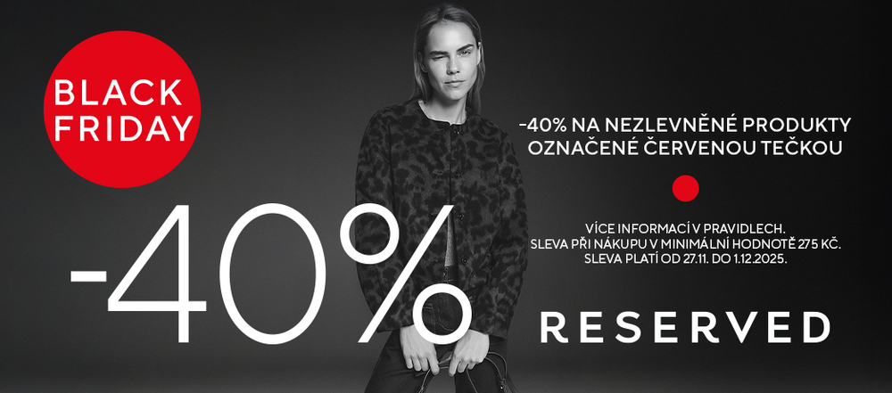 #ReservedForMe • Využijte BLACK FRIDAY na maximum . Přijďte na prodejnu RESERVED a získejte slevu 40% na vybrané modely!!! Platí od 27.11. do 1.12. pouze na prodejnách RESERVED!
