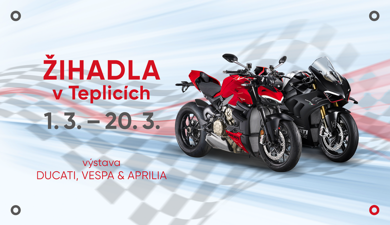 Legendární stroje DUCATI, APRILIA a VESPA budou vystaveny v pasáži centra v termínu 1.3. - 20.3.2023.